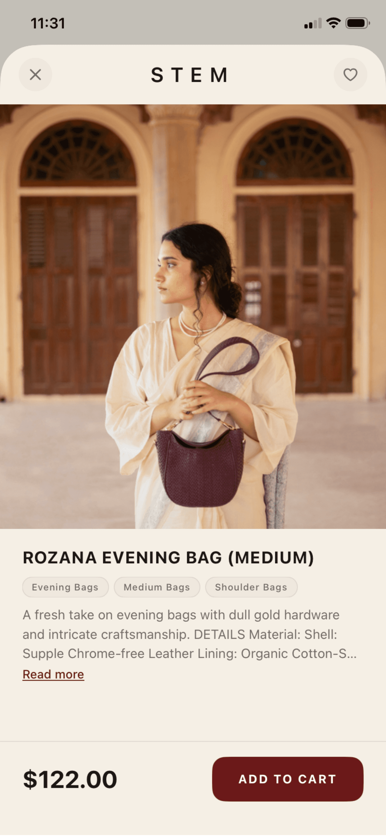 WithStem is that answer. A natural, conversational experience layered directly onto STEM's existing store. No new inventory system. No friction. Just a smarter, more personal way for the right person to find the right piece, through dialogue, not filters.